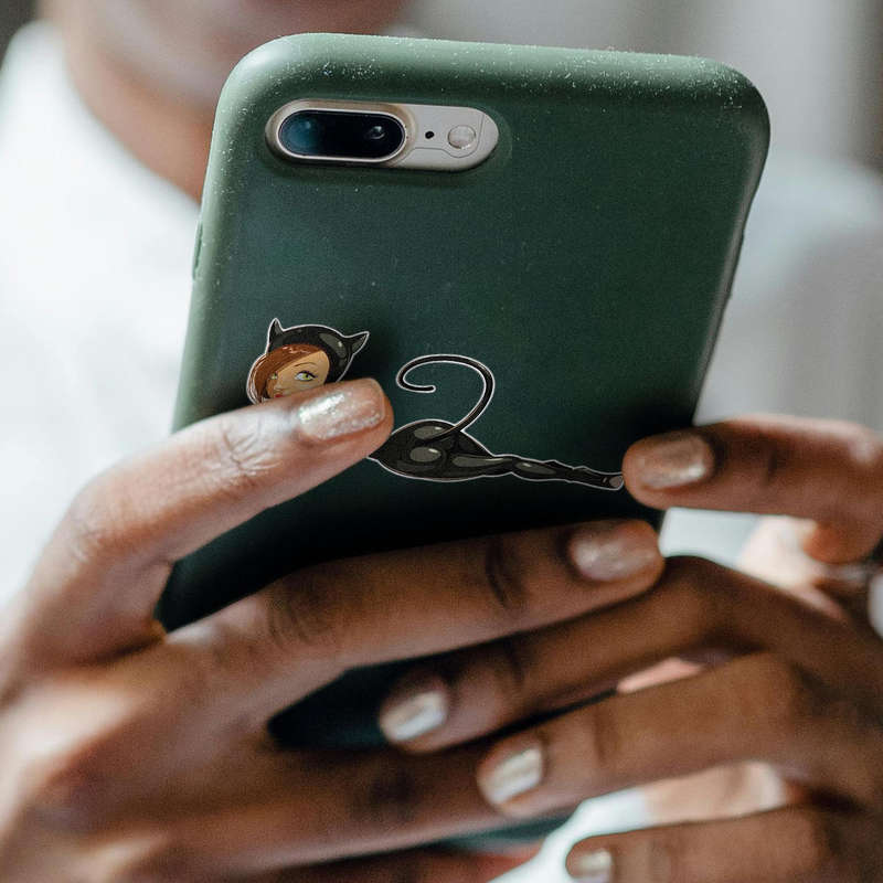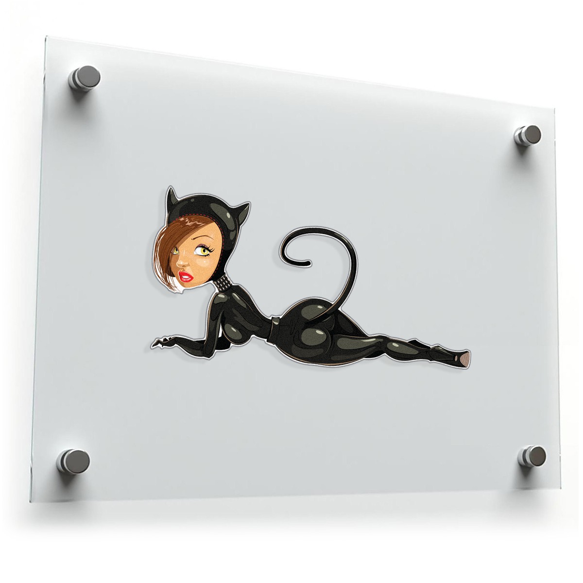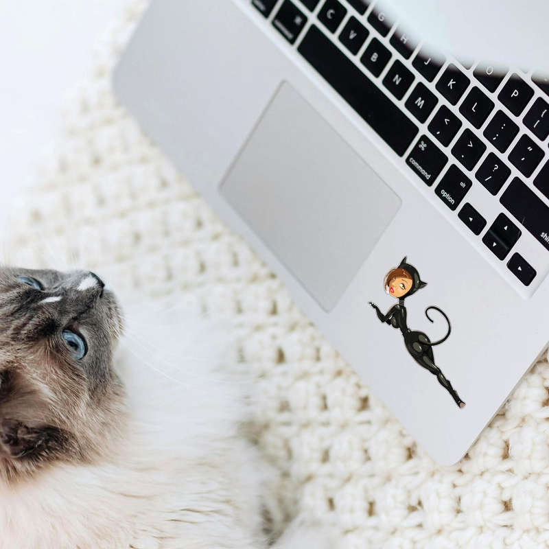 Pin😺 Playful Pin-Up Design: Add a retro vibe to your belongings with this Pin-Up Catwoman Style Sticker, featuring a chic cartoon illustration of a woman in a sleek cat outfit. 😺