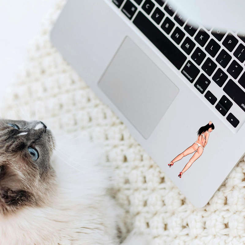 PinπŸ‘™ Retro Pin-Up Design: Featuring a bold and eye-catching illustration of a classic pin-up girl, this sticker adds a touch of vintage allure and playful charm to any surface. πŸ‘™
