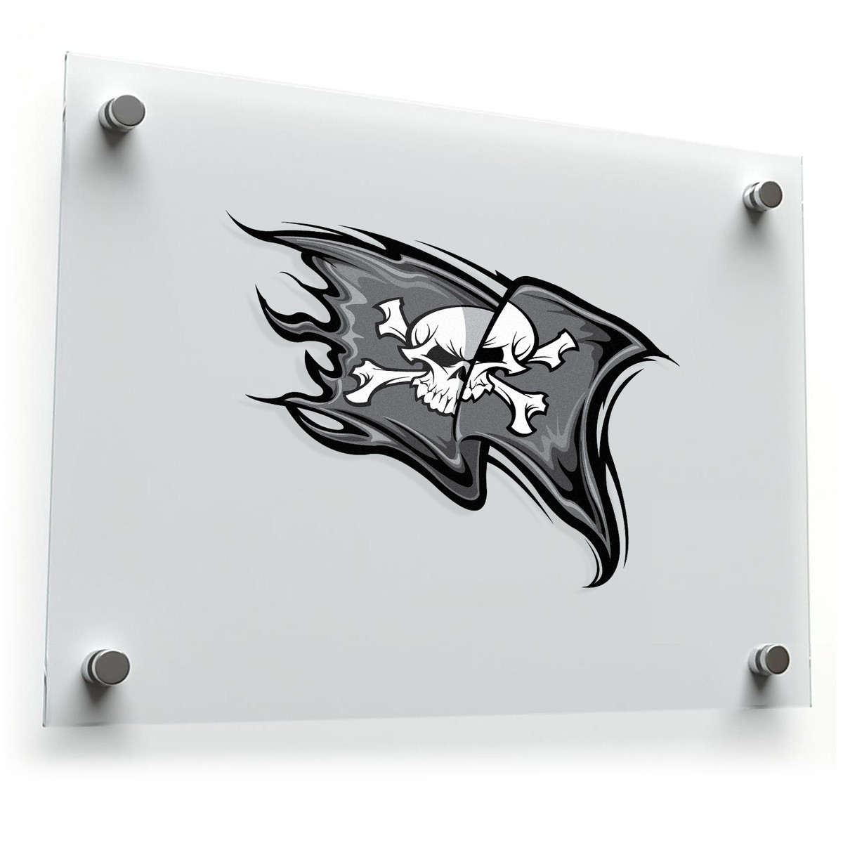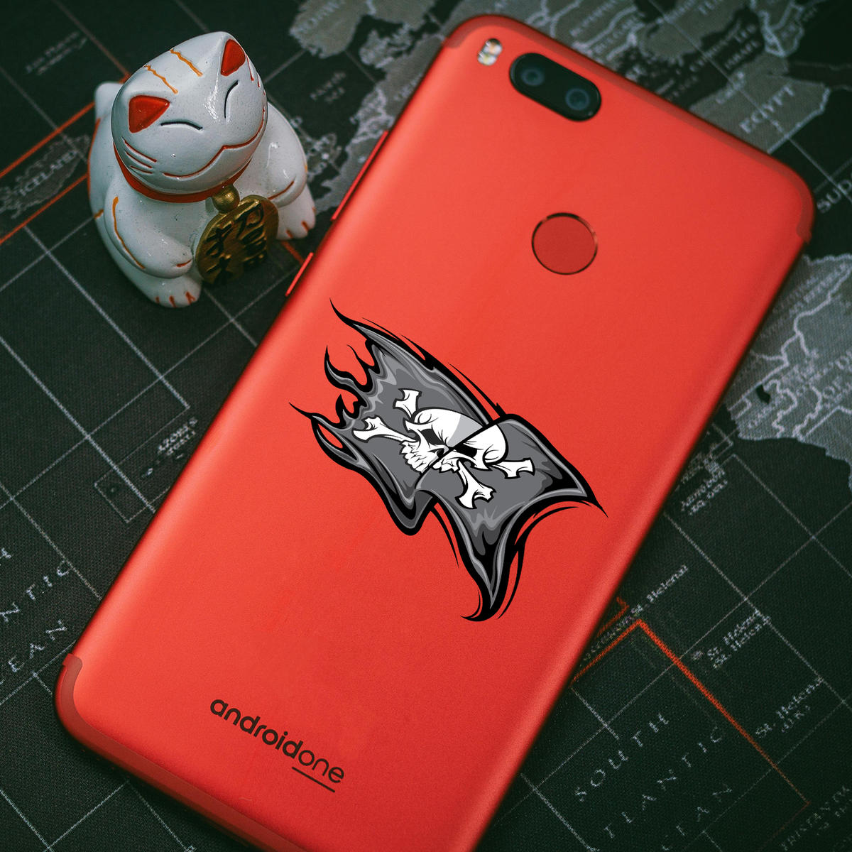 Pirate Flag Skull Sticker 🏴‍☠️ Bold Pirate Flag Design: This sticker features a fierce skull and crossbones on a tattered pirate flag, perfect for adding an adventurous, rebellious touch to your gear. 🏴‍☠️