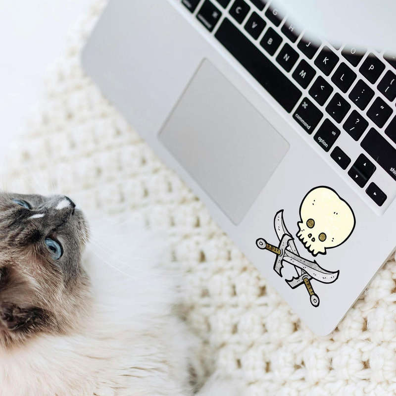 Add a playful pirate flair to your belongings with this cartoon-style skull and crossed swords vinyl sticker. Featuring a light cream skull and bold gray swords, this fun design is perfect for kids, pirate lovers, or anyone looking to add a touch of adventure to their decor. Made from high-quality waterproof vinyl, this decal is ideal for cars, laptops, water bottles, or notebooks, ensuring long-lasting use without peeling or fading. It applies smoothly and removes cleanly without residue, offering easy customization. Available in multiple sizes, this sticker is the perfect way to personalize your favorite surfaces with a swashbuckling style.