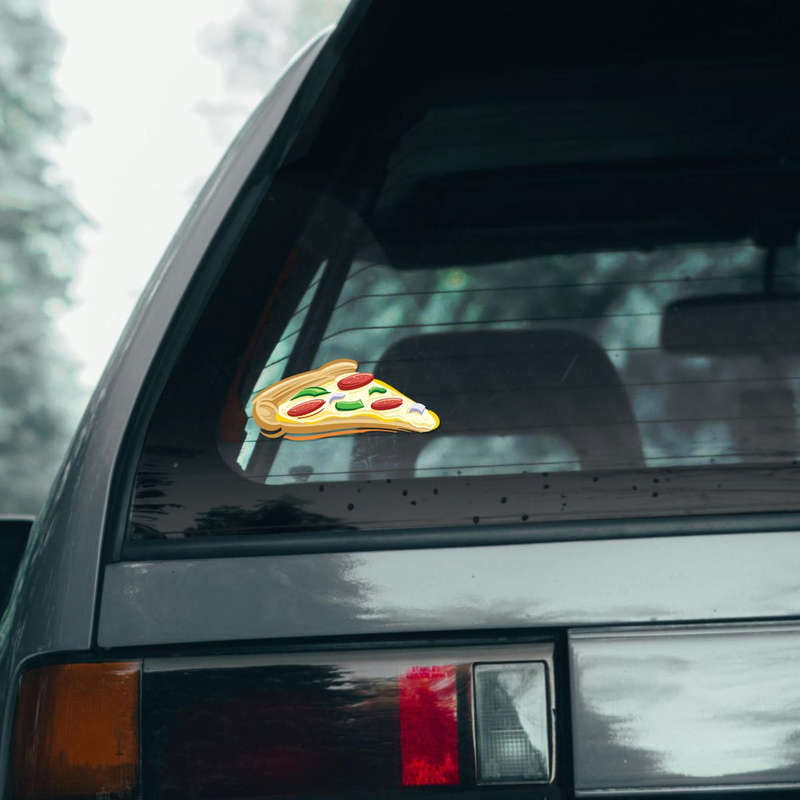 🎨 Bright Colors & Cartoon Style: With bold, colorful toppings, this pizza slice decal adds a whimsical, cartoonish flair that’s sure to stand out on any item. 🎨