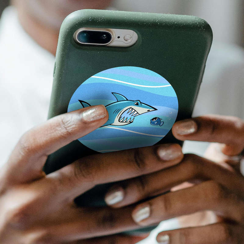 Playful Shark and Fish Sticker 🦈 Fun Oceanic Design: Dive into adventure with this playful sticker featuring a shark and fish in a whimsical cartoon style. The bright blue tones create a lively and cheerful vibe! 🦈