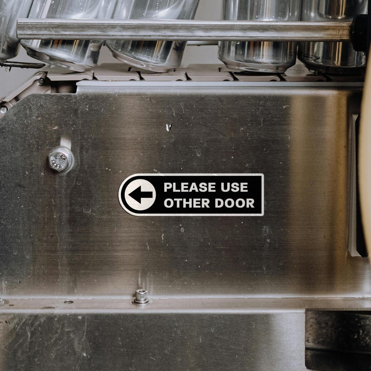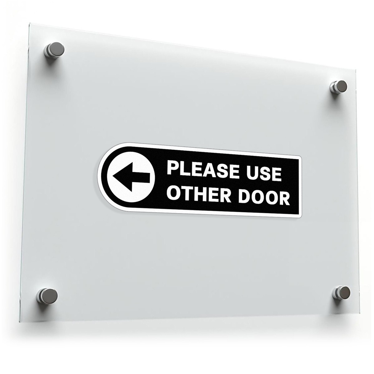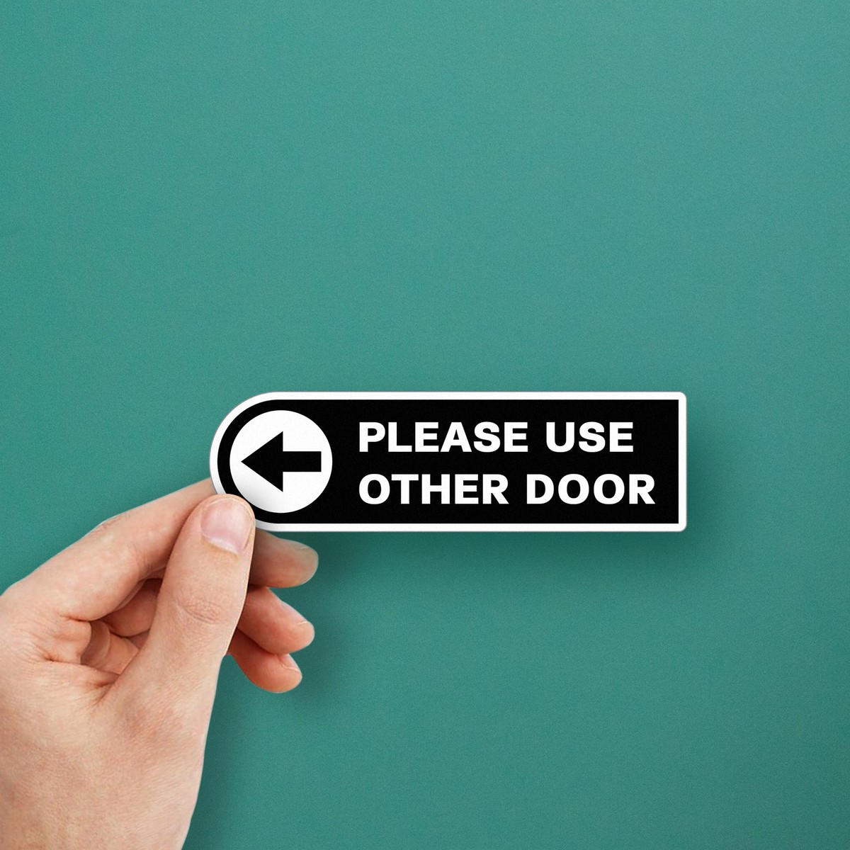 Ensure clear and effective communication with this “Please Use Other Door” directional sticker. Designed with a bold black and white contrast and a clear arrow, this high-visibility decal helps guide customers and visitors to the correct entry point. Made from durable vinyl, it’s perfect for both indoor and outdoor use, resisting fading, wear, and weather. Its easy-to-apply design allows for quick installation on a variety of surfaces, making it an ideal solution for businesses and commercial spaces. Enhance your space with this practical and long-lasting wayfinding sticker.