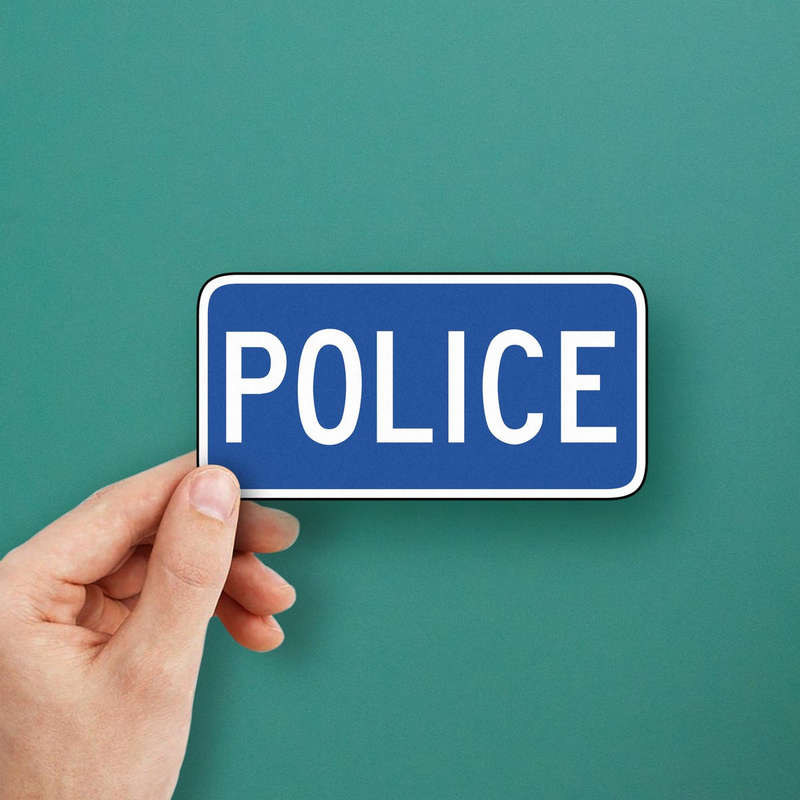 Police Sign Sticker 🚔 Clear and Bold Design: This “POLICE” sign sticker features bold white lettering on a striking blue background for high visibility, ensuring it stands out in any setting. 🚔