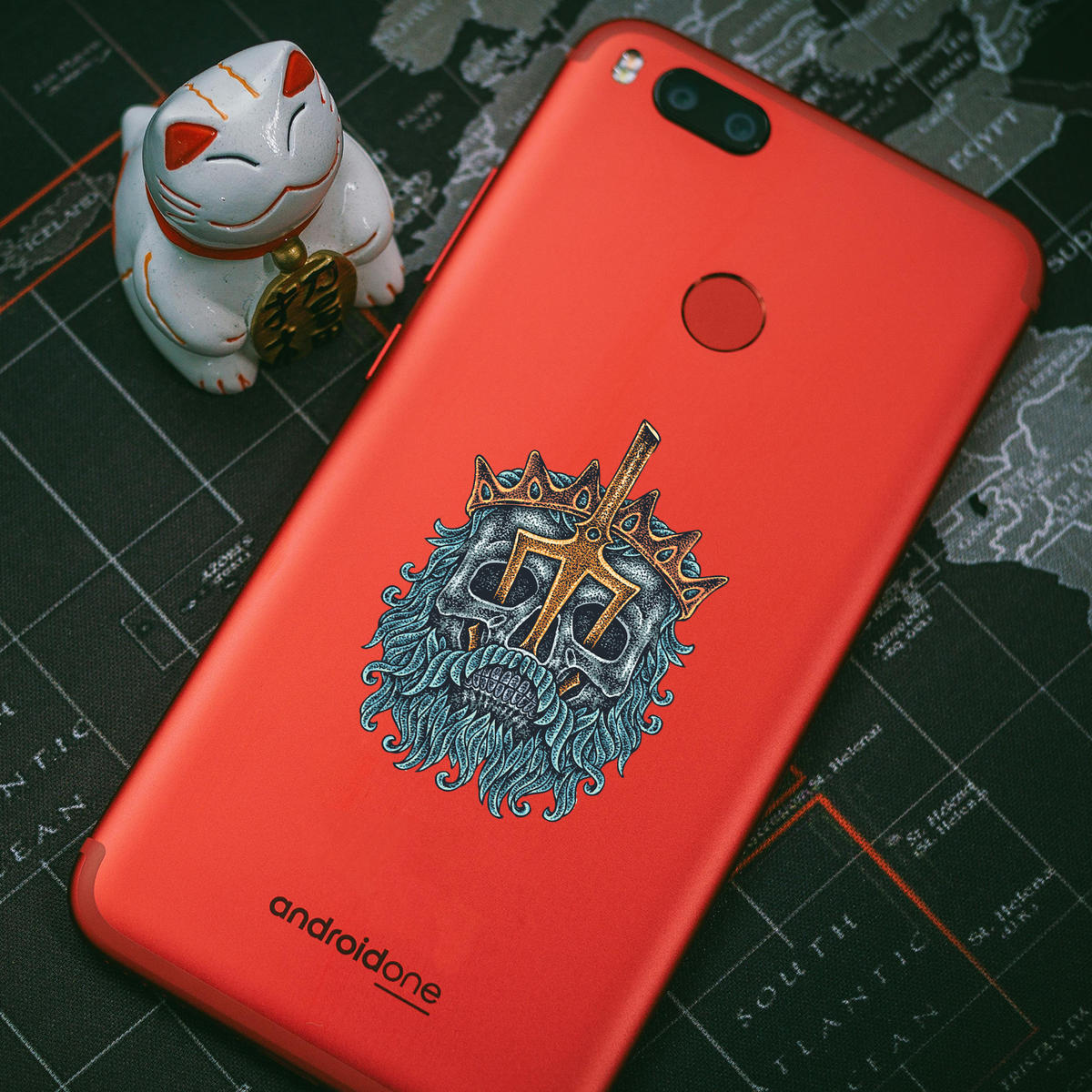 Poseidon King Of Sea Warrior Skull Sticker 💀 Bold Warrior King Design: This intricately detailed warrior king skull sticker adds a powerful and unique touch to your car, laptop, or home decor. Perfect for fans of gothic and medieval art! 💀
