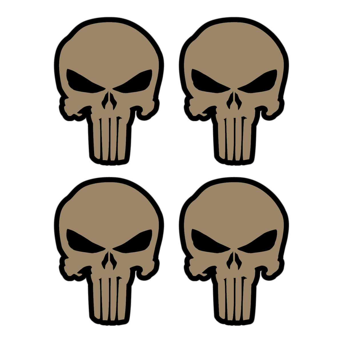 Add a tactical edge to your gear with this set of 4 Punisher-style skull vinyl stickers. Featuring a bold and iconic skull design, these decals are perfect for personalizing cars, bikes, laptops, and more. Crafted from durable, waterproof vinyl, they are built to withstand the elements while maintaining their sharp, vivid look. Easy to apply and remove without leaving residue, these decals offer a flexible way to express your style. Available in multiple size options, this set makes a great gift for fans of tactical or military aesthetics.