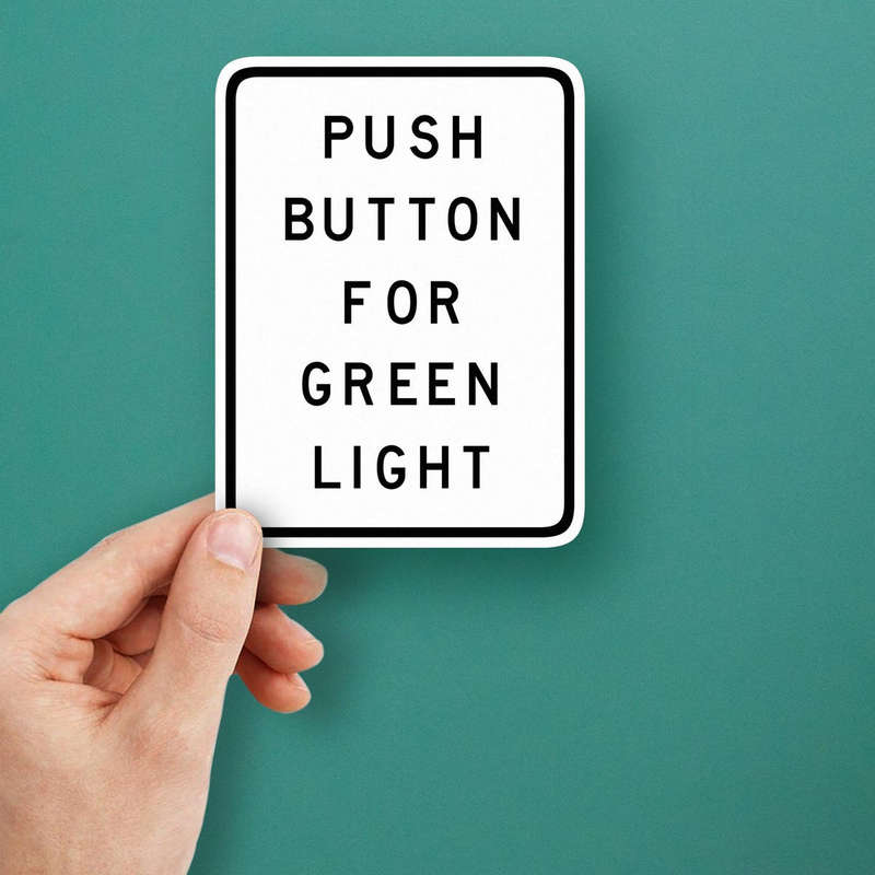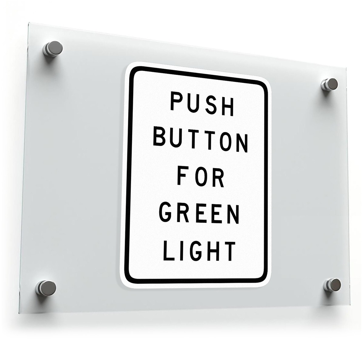 Enhance safety and communication with this “Push Button for Green Light” sticker, featuring bold black text on a clean white background for maximum visibility. This durable vinyl decal is weatherproof and resistant to fading, ensuring reliable performance in both indoor and outdoor environments. Designed for easy application on smooth surfaces such as metal, glass, or plastic, it can also be removed without leaving residue. Perfect for pedestrian crossings, industrial facilities, or parking lots, this instructional sticker is a practical solution for traffic and safety management. Improve clarity and safety in high-traffic areas with this essential signage.