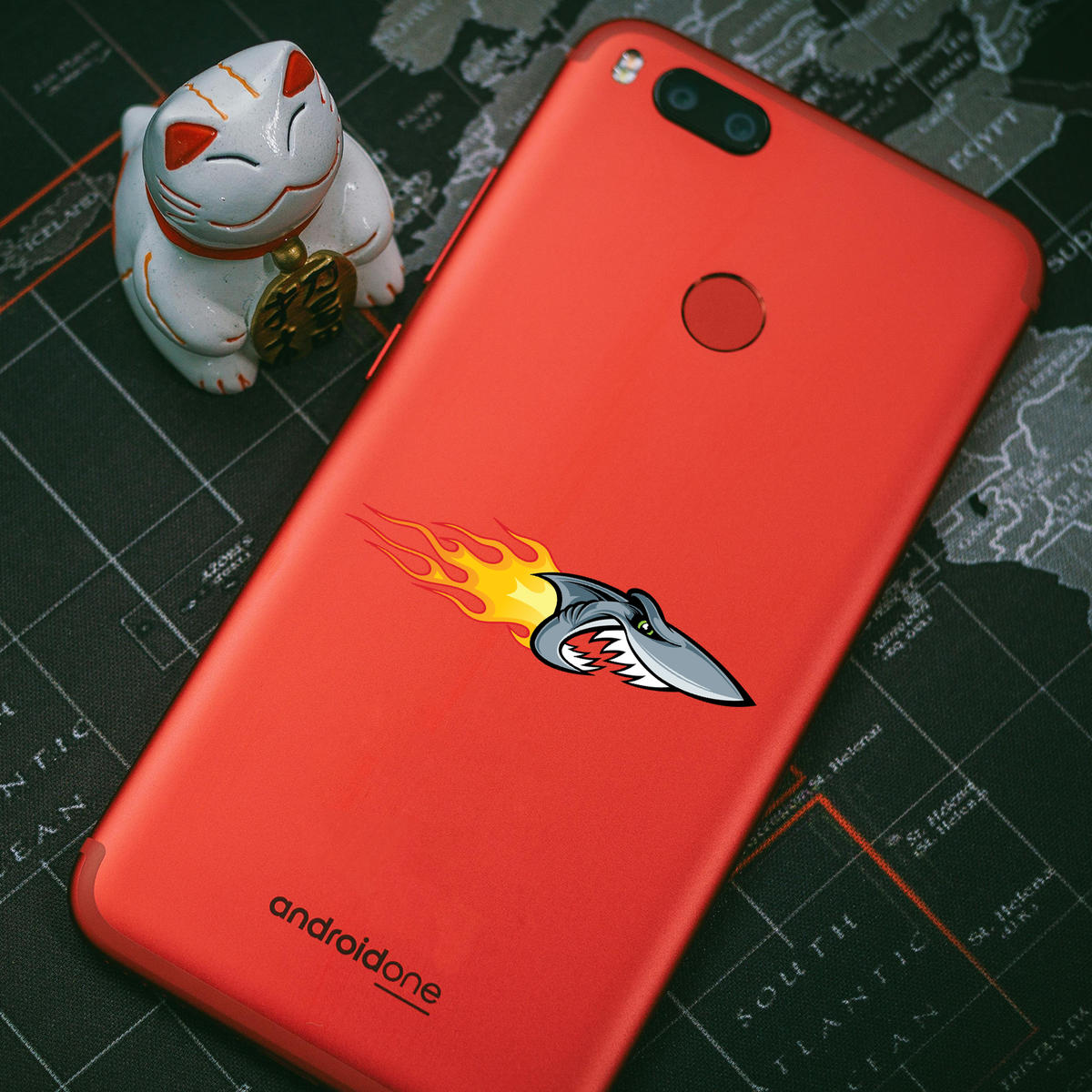 Racing Shark Vinyl Sticker 🦈 Dynamic Racing Shark Design: This racing shark sticker features a fierce shark with vibrant flames, perfect for adding a bold and dynamic touch to any surface. 🦈