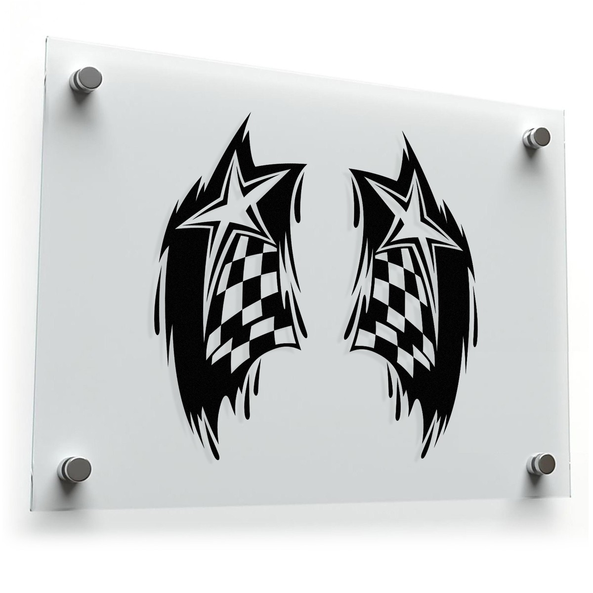 Add the thrill of the race to your personal belongings with this bold racing wings silhouette sticker. Featuring a dynamic black vinyl design with checkered flags and stars, this decal celebrates motorsports and speed in a striking way. Perfect for cars, laptops, toolboxes, or garage walls, it’s crafted from premium, durable vinyl to ensure long-lasting performance and easy, residue-free removal. Whether you’re a racing enthusiast or simply love edgy and energetic designs, this sticker is available in multiple sizes to fit your style. Its bold and vibrant aesthetic makes it a must-have for motorsport lovers.