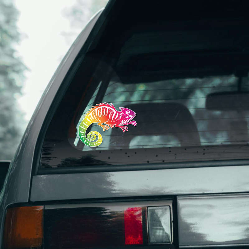 🚗 Versatile Decoration: Ideal for cars, laptops, walls, and more, this decal can be applied to various surfaces, allowing you to showcase this beautiful chameleon wherever you want a pop of color. 🚗