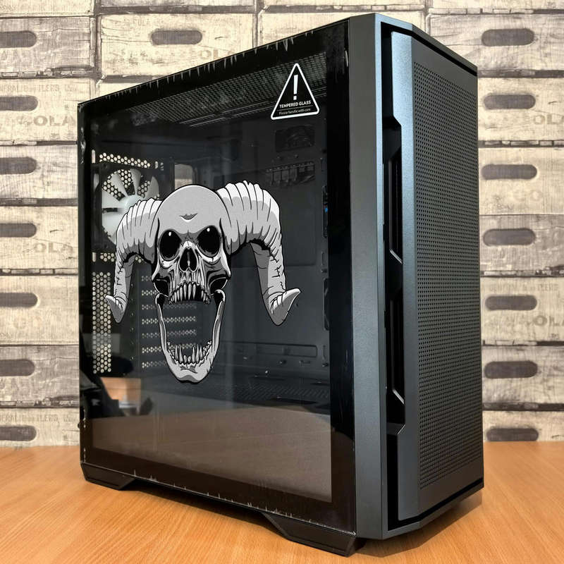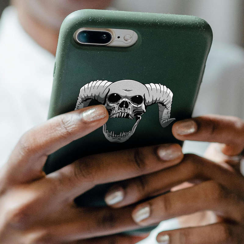 Ram Horn Skull Sticker 💀 Striking Ram Horn Skull Design: This detailed gothic-style skull features powerful ram horns and sharp, intricate detailing, perfect for adding an edgy and bold statement to your gear. 💀