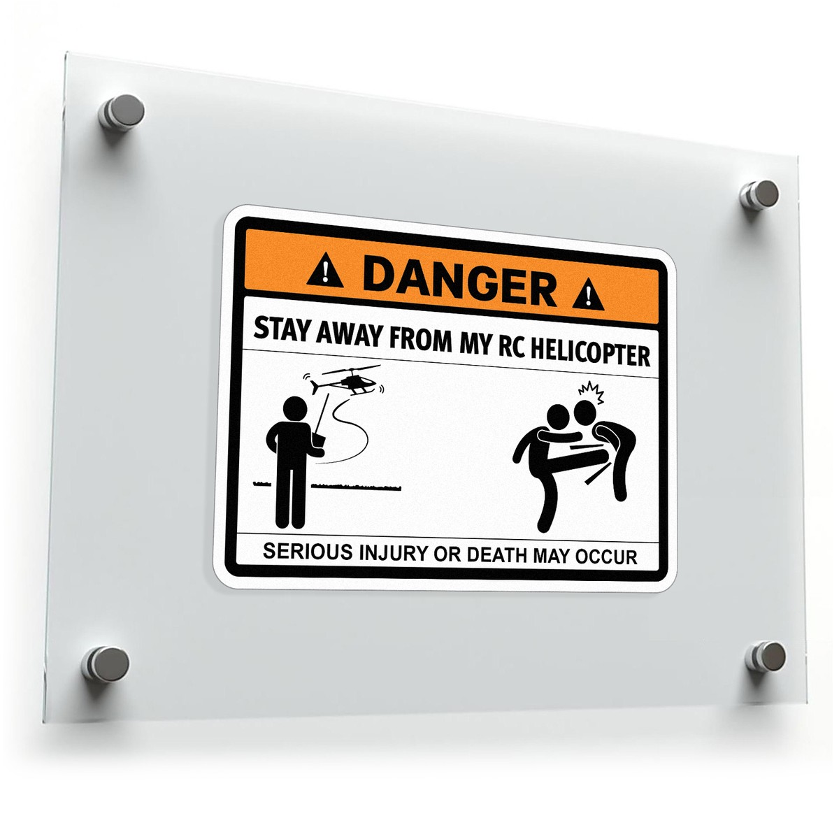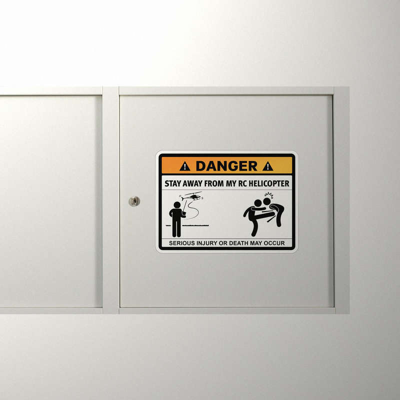 Ensure safety around your RC helicopter with this bold warning sticker, featuring a clear “Danger – Stay Away” message in black and orange for high visibility. Designed for RC enthusiasts, this durable vinyl decal warns bystanders to keep their distance, helping to prevent accidents and protect your equipment. It’s weather-resistant and built to last, making it ideal for outdoor use on RC gear. Easy to apply and remove without residue, this sticker is a practical safety solution for both hobbyists and professionals. Available in multiple sizes, it’s a must-have for any safety-conscious RC operator.