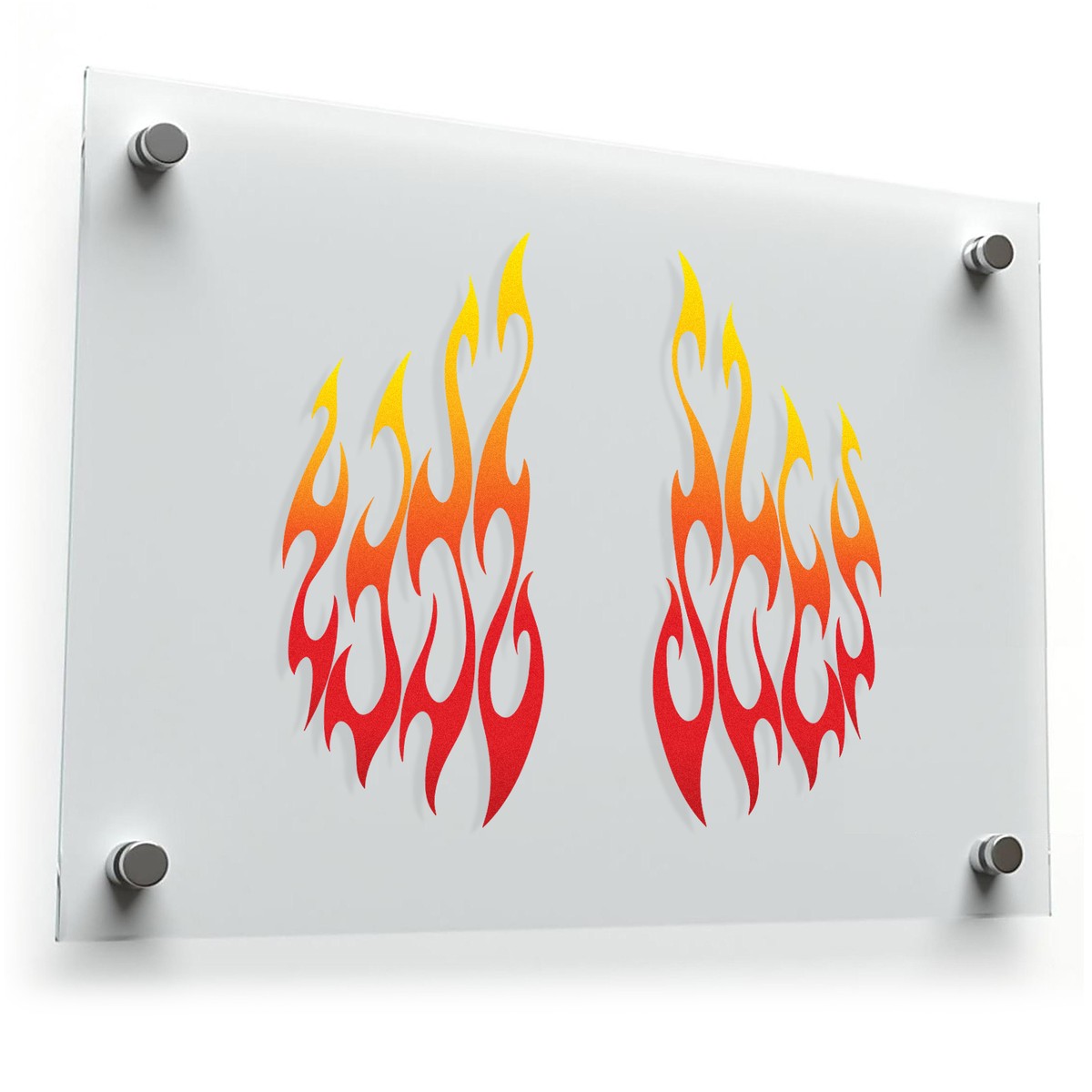 Red and Yellow Flame Vinyl Sticker Set 🔥 Vivid Flame Design: This set of two racing flame stickers features a dynamic red and yellow gradient, adding a striking and fiery touch to any surface. Perfect for automotive enthusiasts! 🔥