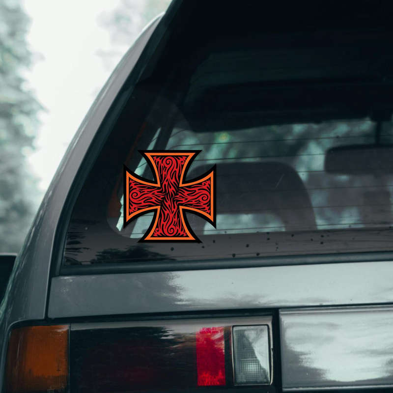Red Flame Iron Cross Sticker