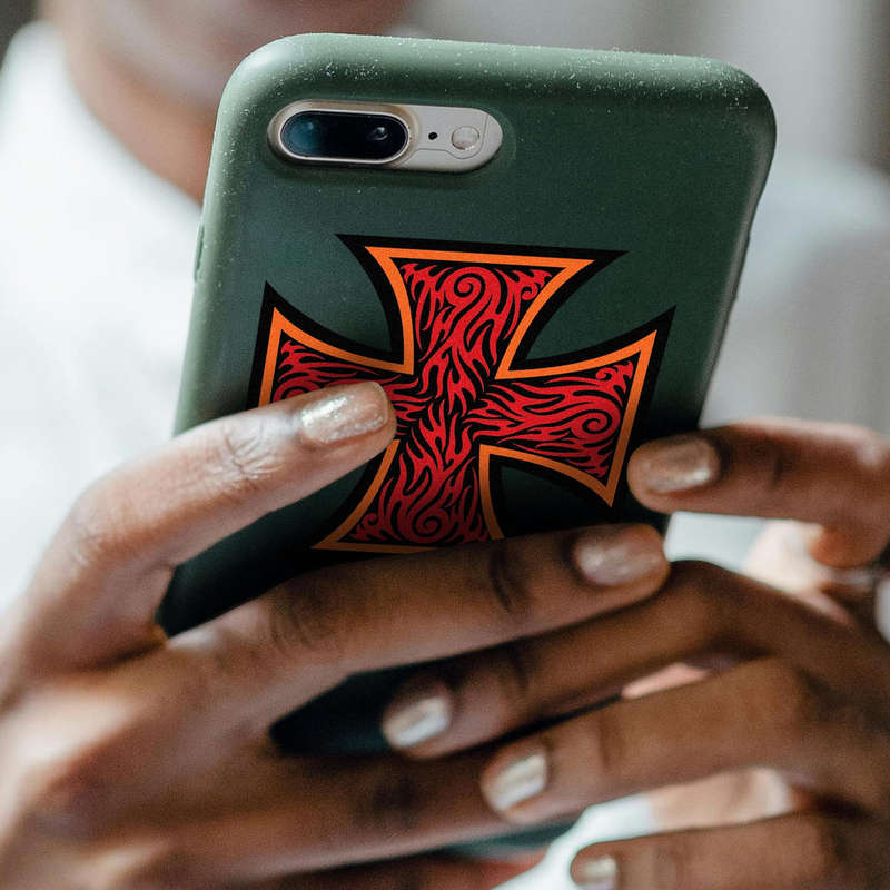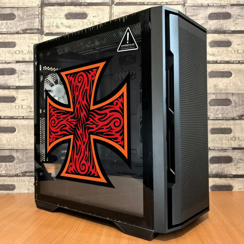 Red Flame Iron Cross Sticker 🔥 Striking Flame Cross Design: Featuring a bold red and black flame-inspired Iron Cross, this sticker adds a dynamic and gothic touch to any surface. 🔥