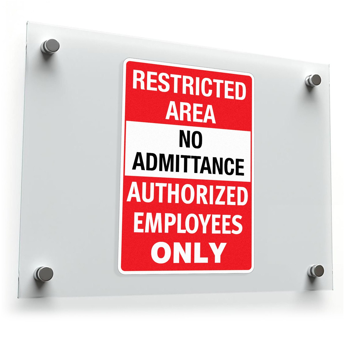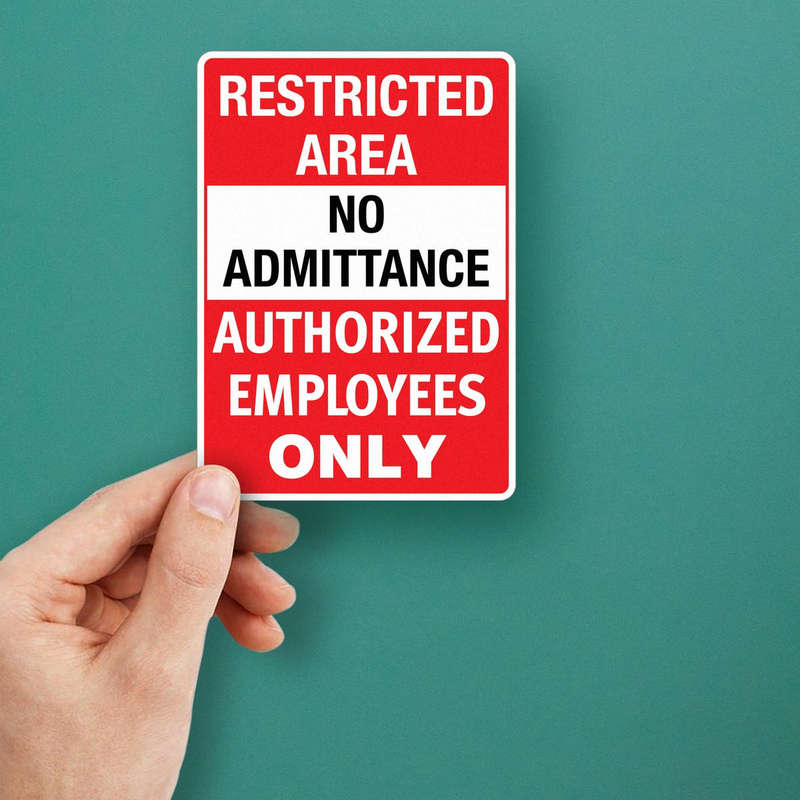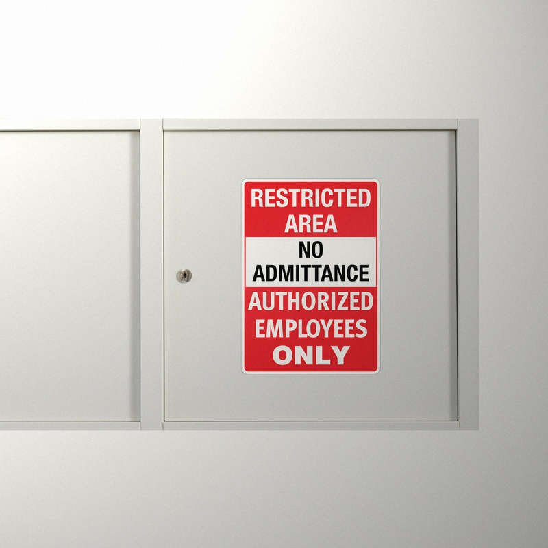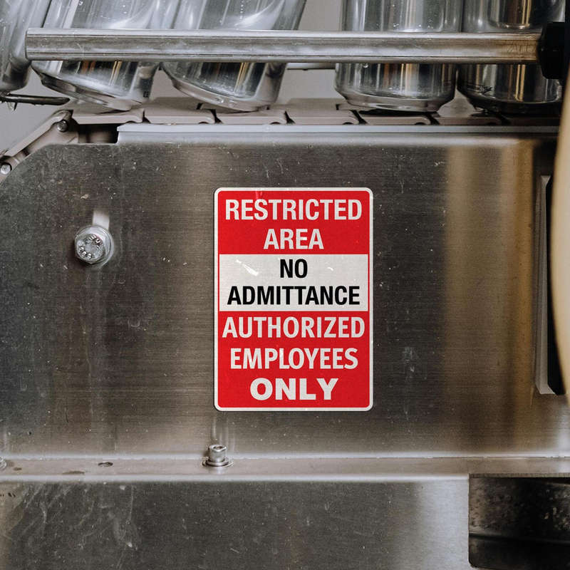 Enhance workplace safety and security with this “Restricted Area No Admittance Authorized Employees Only” decal. Featuring bold red and white colors and a clear warning message, this vinyl sticker is highly visible and ideal for high-traffic areas. Constructed from durable vinyl, it is resistant to weather and wear, making it suitable for both indoor and outdoor use. The adhesive backing ensures quick application on doors, walls, or equipment, and it removes cleanly without leaving residue. Perfect for OSHA-compliant workplaces, this decal is an effective tool to reinforce restricted access and ensure compliance with safety standards.