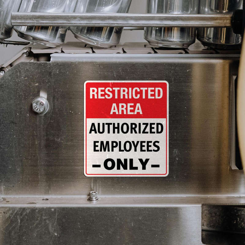 Enhance safety and security with this “Restricted Area – Authorized Employees Only” sign sticker. Featuring bold red, white, and black text, this professional vinyl decal delivers a clear and authoritative warning for restricted areas. Made from durable and weather-resistant vinyl, it’s suitable for both indoor and outdoor use, maintaining its vibrant appearance over time. The self-adhesive backing ensures quick and easy application to doors, walls, or flat surfaces, while being removable without leaving residue. Ideal for industrial, commercial, or workplace environments, this decal promotes compliance with safety standards and reinforces access control policies. Available in multiple sizes for versatile placement.