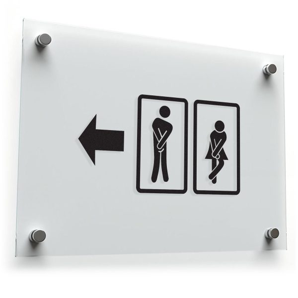 📌 Clear Direction: The bold arrow and clean black-and-white design ensure that restroom directions are noticeable and unmistakable. 📌
