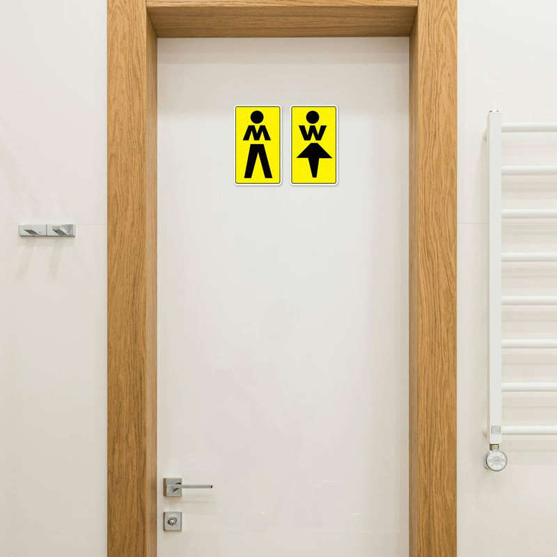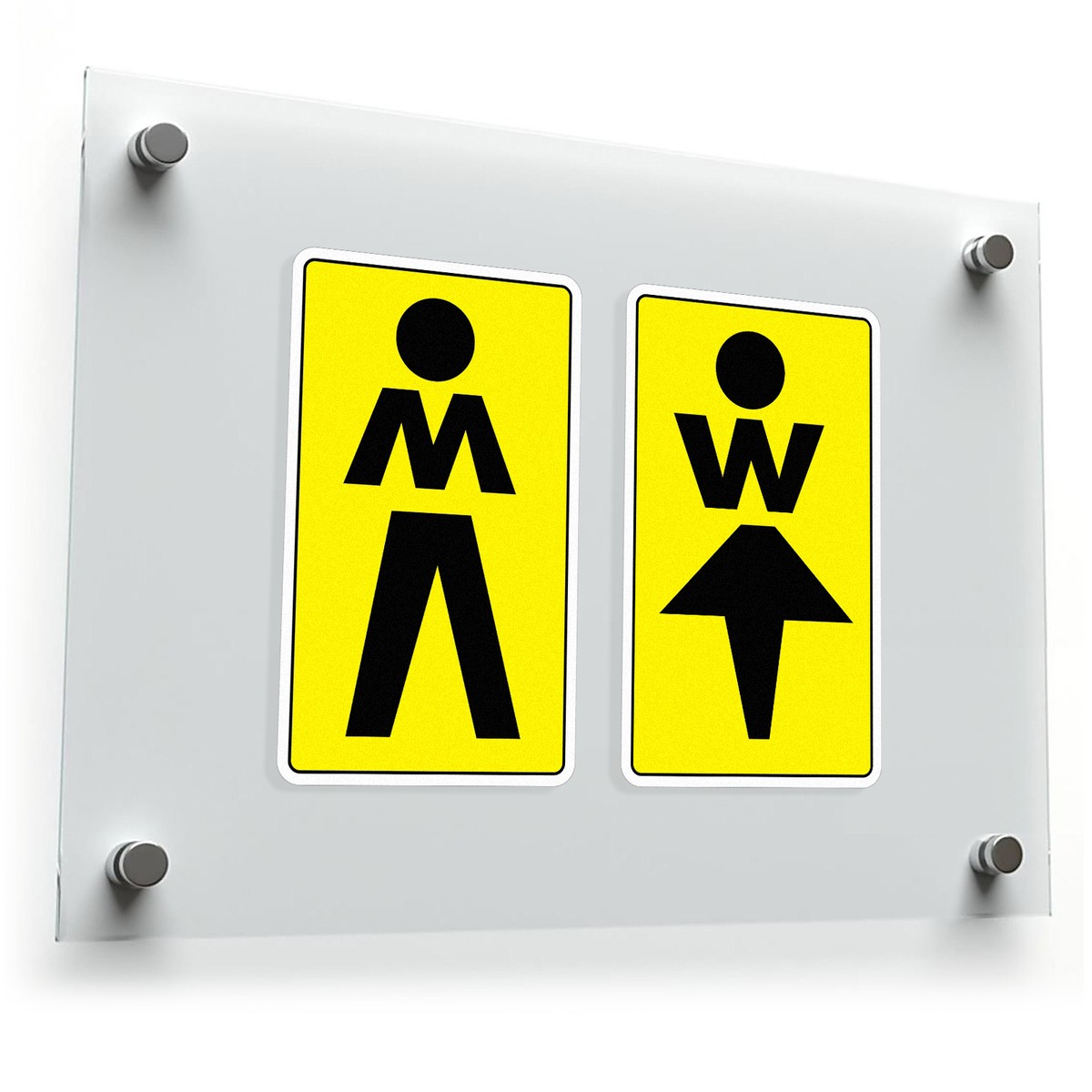 Ensure clear and universal restroom identification with these bold men and women symbol stickers. Designed with a striking yellow and black color scheme, they offer maximum visibility, making them perfect for both busy and low-light environments. Crafted from durable vinyl, these stickers are weatherproof and fade-resistant, ensuring lasting quality indoors or outdoors. Their easy peel-and-stick application allows smooth adherence to doors, walls, or tiles, with clean removal that leaves no residue. Ideal for offices, cafes, or public spaces, these restroom sign stickers combine functionality with a sleek and modern design, making them a practical and stylish choice.