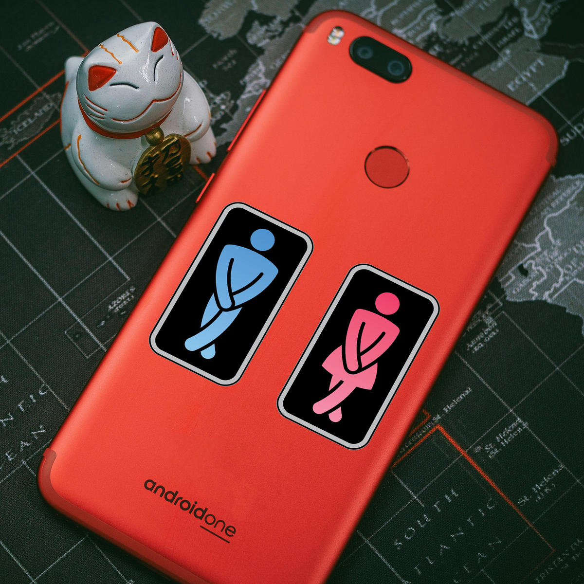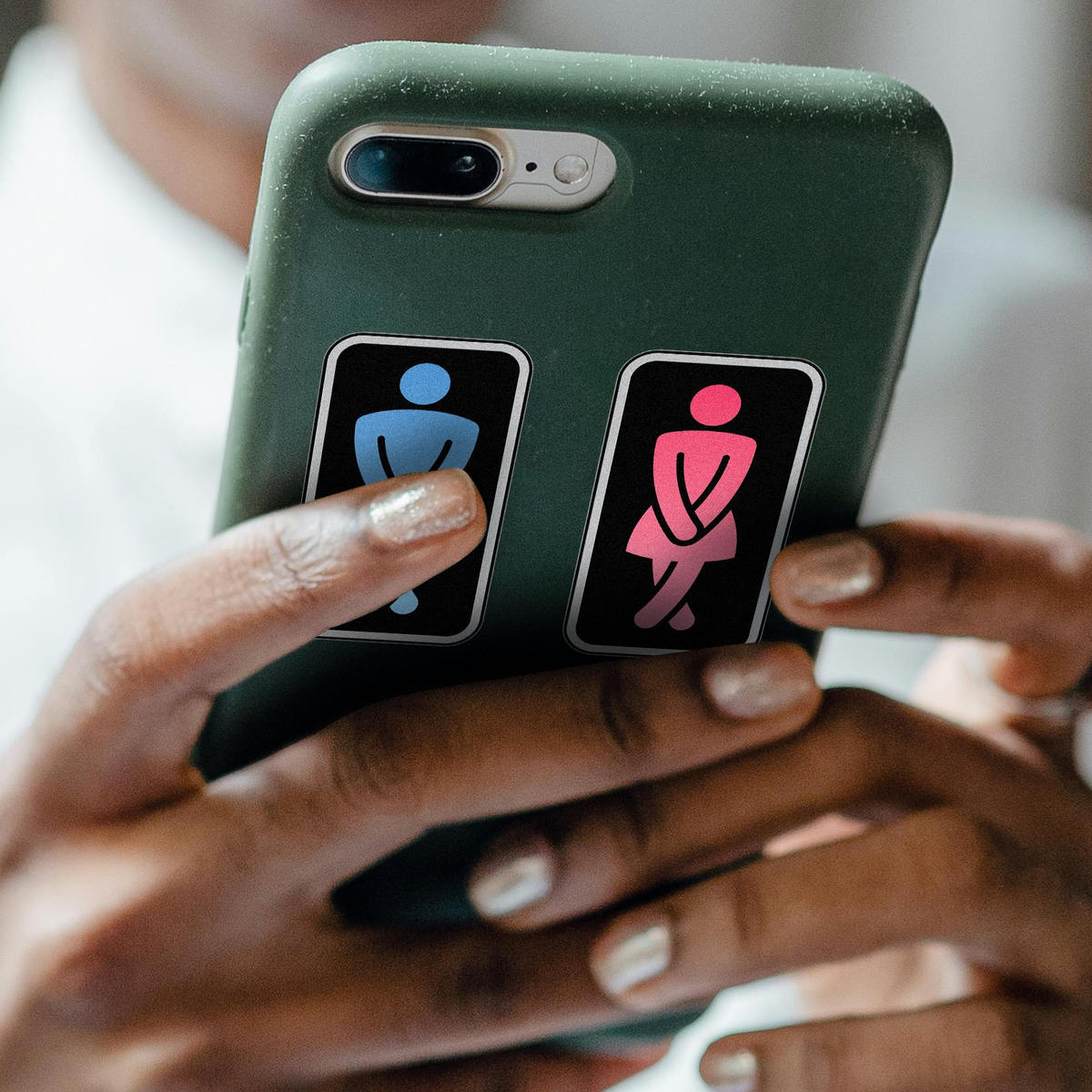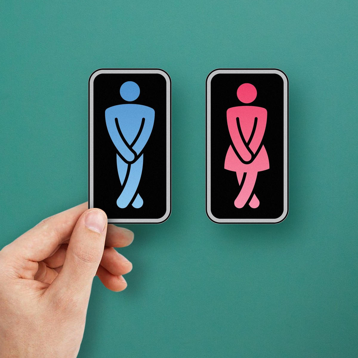 Restroom Symbols Vinyl Decal 🚻 Fun Restroom Symbol Design: This decal set features humorous blue and pink restroom symbols, adding a playful touch to any bathroom space. 🚻