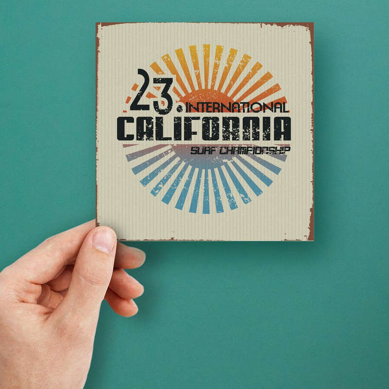 Capture the essence of surfing culture with this retro California surf championship sticker. Featuring a distressed design with bold typography and a vibrant sunburst, this decal celebrates the 23rd International Surfing Championship in style. Perfect for surfboards, laptops, or car windows, it adds a touch of coastal charm to your belongings. Made from durable materials, it resists fading and peeling, ensuring its rustic beauty remains intact over time. Whether you’re a beach lover or a surfing enthusiast, this versatile sticker is easy to apply and remove without leaving residue. Available in multiple size options, it’s the perfect tribute to California’s surfing legacy.