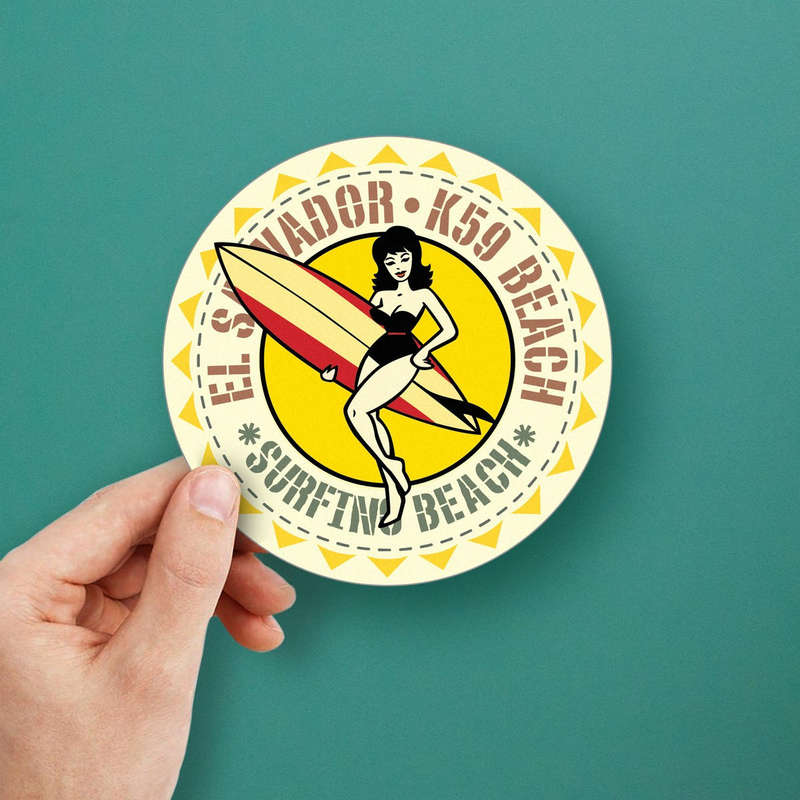 Capture the spirit of vintage surf culture with this retro surfing girl vinyl sticker, featuring the iconic “El Salvador K59 Beach” design. Perfect for decorating cars, laptops, water bottles, or surf gear, this durable sticker is made from waterproof and UV-resistant vinyl, ensuring long-lasting use. Whether you’re hitting the waves or just love beach life, the easy peel-and-stick application makes it simple to customize your belongings with a nostalgic touch. Available in multiple sizes, this sticker is ideal for surf enthusiasts and those looking to showcase their love for El Salvador’s famous K59 Beach.