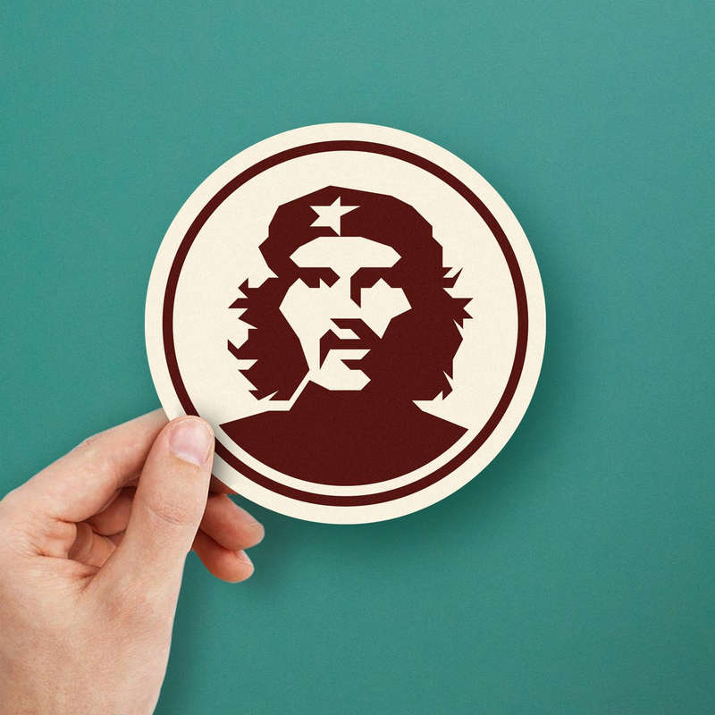 Showcase bold symbolism with this revolutionary portrait sticker, featuring a striking monochrome design and vintage star emblem. Perfect for adding a retro aesthetic to laptops, water bottles, or personal spaces, this decal makes a powerful statement. Crafted from durable materials, it resists fading and peeling, maintaining its bold look over time. Its cultural and political symbolism makes it a versatile piece for personal expression or educational purposes. Easy to apply and remove without residue, this sticker is an effortless way to personalize your belongings. Available in multiple size options, it’s an essential addition for history and design enthusiasts.