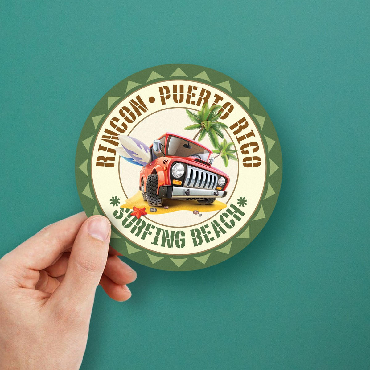 Celebrate the tropical surf vibes of Rincon, Puerto Rico with this vibrant, vintage-style sticker. Perfect for cars, laptops, and travel gear, this high-quality vinyl decal is designed for durability and easy application. Whether you’re a surfer, beach lover, or just enjoy tropical destinations, this sticker adds a fun and stylish touch to your belongings. Waterproof and removable, itโs perfect for outdoor and indoor use. Available in multiple sizes, this versatile sticker allows you to personalize your items and bring a bit of the beach life wherever you go.
