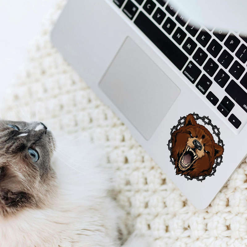 Command attention with this roaring bear silhouette sticker encircled by a bold black chain. Its intricate brown and black design adds depth and intensity, symbolizing power and strength. Perfect for personalizing cars, laptops, or home decor, this premium vinyl decal is resistant to fading and peeling, ensuring long-lasting durability. Easy to apply and remove, it adheres seamlessly to smooth surfaces without leaving residue. Available in multiple size options, this bear sticker is a versatile way to make a statement, blending rugged charm with artistic detail for a truly striking effect.