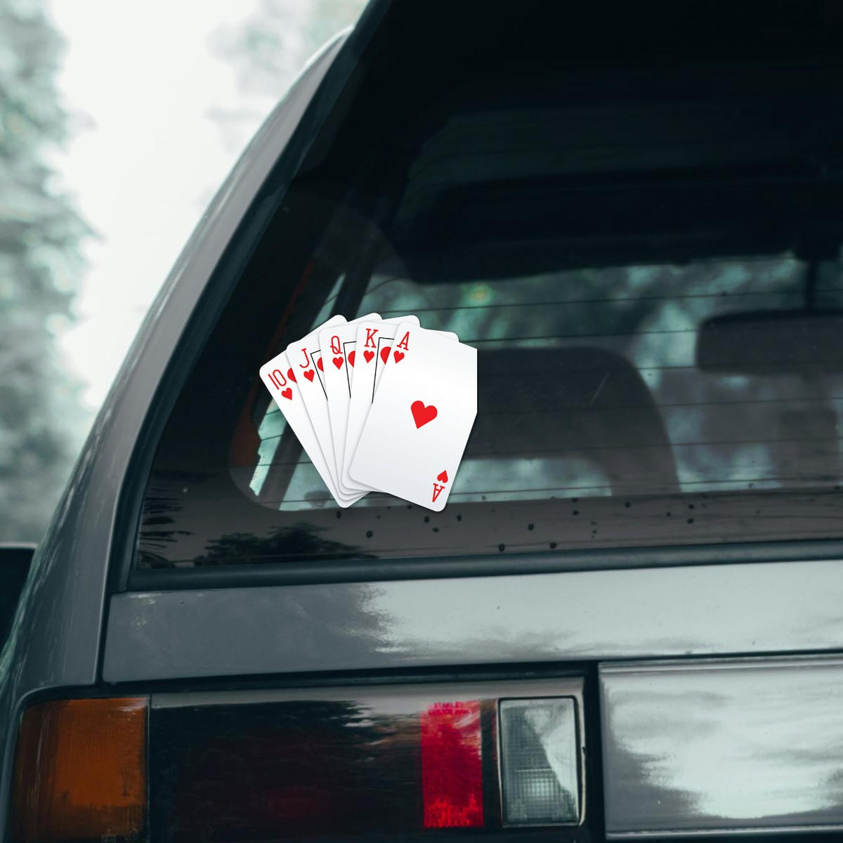 Showcase your love for poker with this Royal Flush playing card sticker, featuring the iconic poker hand design. Crafted from durable vinyl, this sticker is perfect for cars, laptops, or home décor, adding a bold touch to any surface. Its versatile application makes it easy to personalize your belongings, and the high-quality material ensures it remains vibrant and intact over time. Whether you’re a poker enthusiast or simply love card games, this sticker offers a stylish way to express your passion for the game. Easy to apply and remove, it’s perfect for temporary or permanent use.