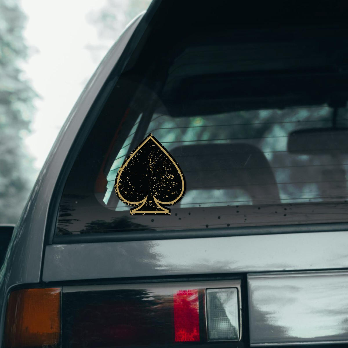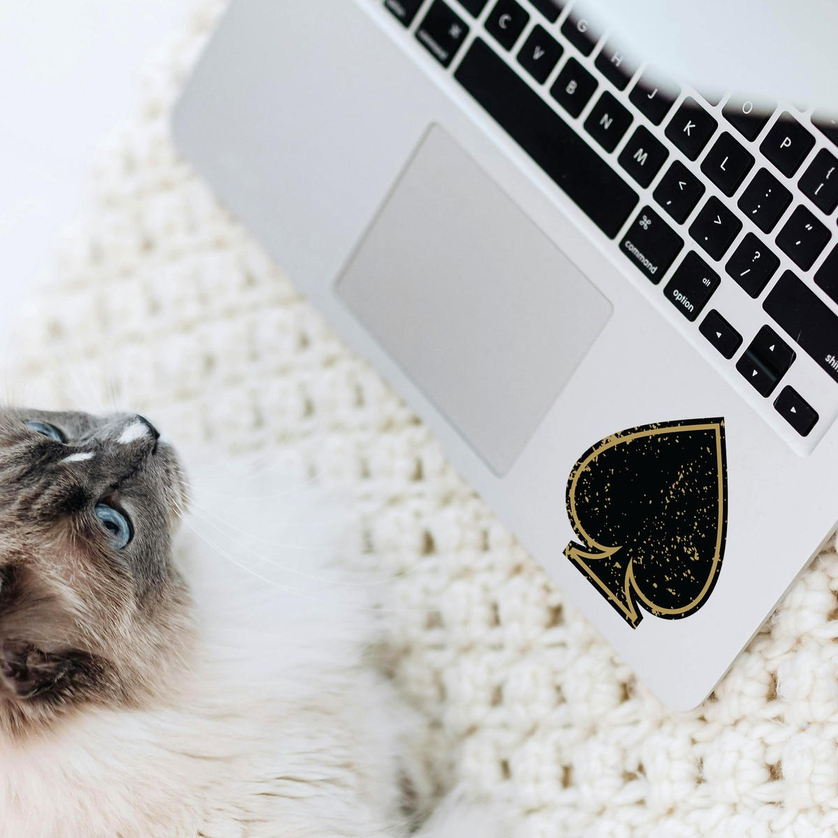 Bring a touch of vintage charm to your belongings with this rustic spade sticker. Featuring a weathered black and gold design, this playing card suit decal is perfect for personalizing laptops, water bottles, or even car windows. Made from durable, eco-friendly vinyl, this sticker is built to withstand outdoor elements without fading or peeling. Its peel-and-stick design makes it easy to apply and remove, offering you flexibility in how you decorate. Whether you’re a fan of classic card games or just looking for a bold accent piece, this spade sticker is a stylish and sustainable option for your décor needs.