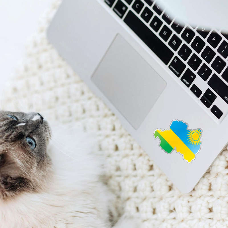Show your pride for Rwanda with this vibrant map sticker, featuring the national flag design with bold blue, yellow, and green hues topped by the radiant sun emblem. Perfect for decorating laptops, cars, or water bottles, this versatile decal brings a touch of culture and personality to your belongings. Made from durable vinyl, it withstands fading and wear, making it ideal for both indoor and outdoor use. Whether you’re a traveler, a patriot, or someone celebrating African heritage, this sticker is a stylish and meaningful way to express your admiration. Available in multiple size options, it’s easy to apply and remove without leaving residue behind.