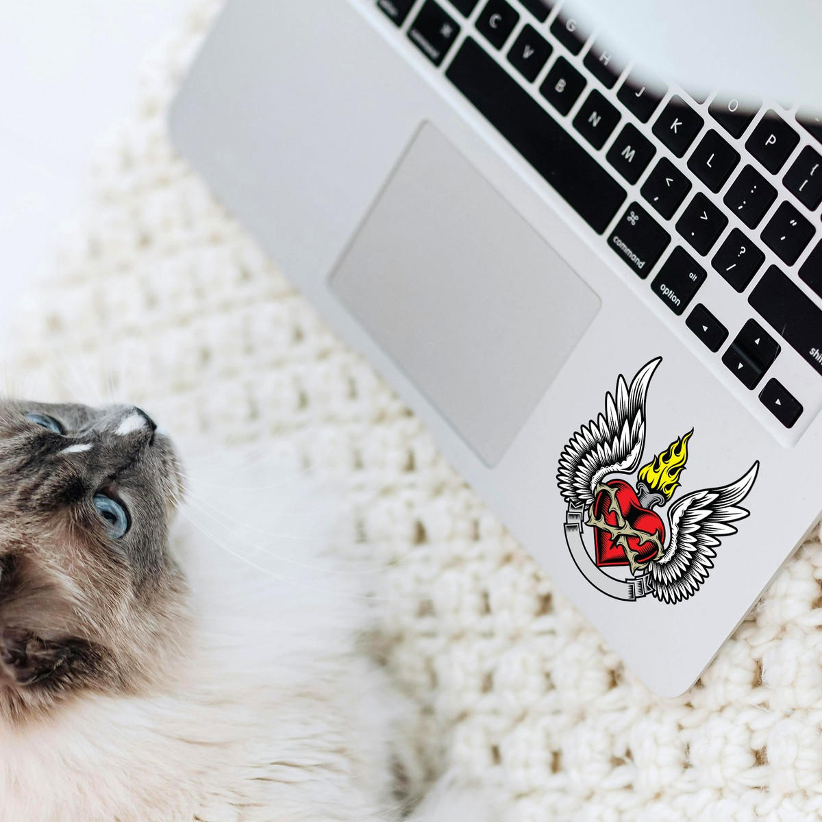 Sacred Heart with Wings Sticker ❤️ Sacred Heart Design: Featuring a vibrant red heart engulfed in flames, surrounded by angelic wings and intricate details, this sticker is a stunning symbol of passion, faith, and resilience. ❤️