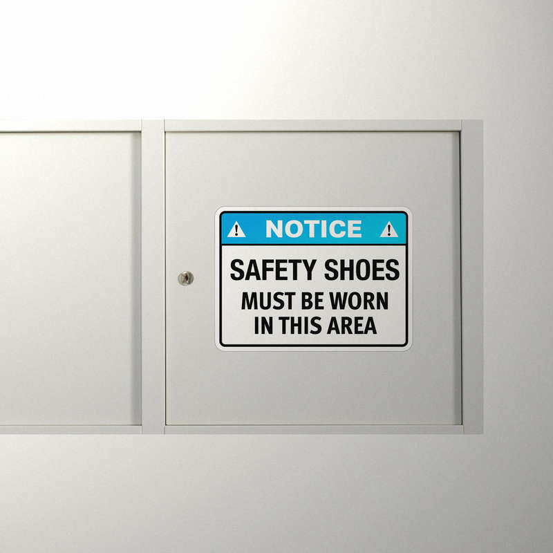 Enhance workplace safety with this clear and bold “Safety Shoes Must Be Worn in This Area” vinyl decal. Designed to communicate essential safety requirements, this sign is perfect for factories, warehouses, workshops, and construction zones. Crafted from high-quality, waterproof vinyl, it is built to endure harsh industrial conditions, resisting fading, peeling, and weather damage. With easy bubble-free application and clean removal, it adheres seamlessly to walls, doors, or equipment, ensuring hassle-free installation. An essential tool for managers and business owners, this durable decal promotes compliance and creates a safer work environment for employees.