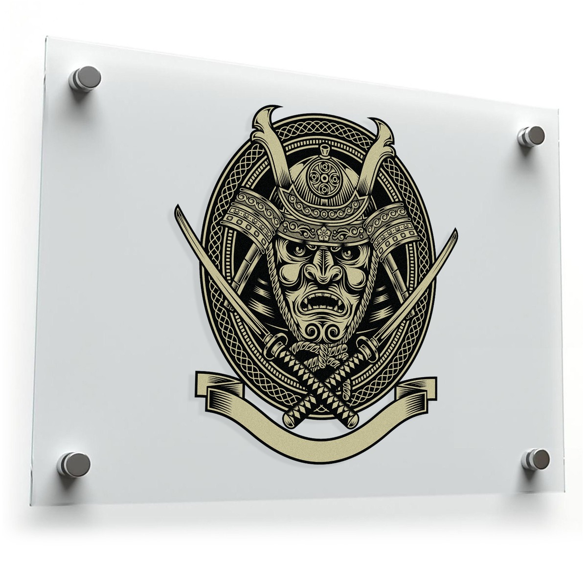 Samurai Warrior Helmet Sticker ⚔️ Intricate Samurai Design: This stunning sticker features a highly detailed samurai warrior helmet and crossed swords, showcasing traditional Japanese artistry. ⚔️