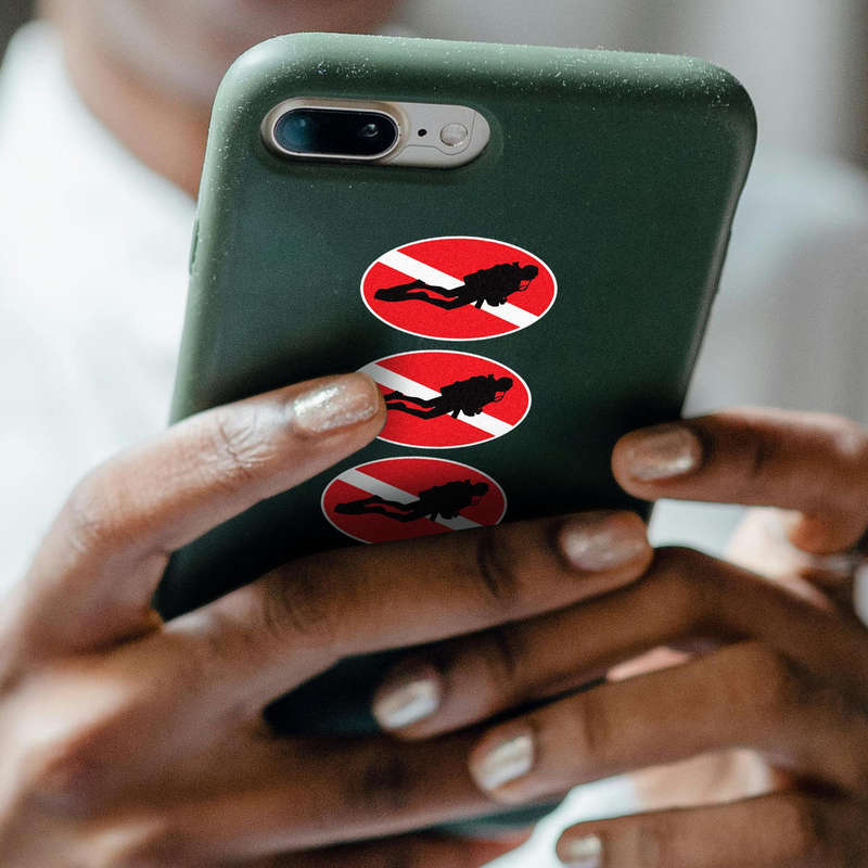 Scuba Diver Decal Set 🌊 Iconic Dive Flag Design: Represent your love for diving with this classic scuba diver decal set, perfect for showcasing your passion on cars, laptops, and diving gear. 🌊