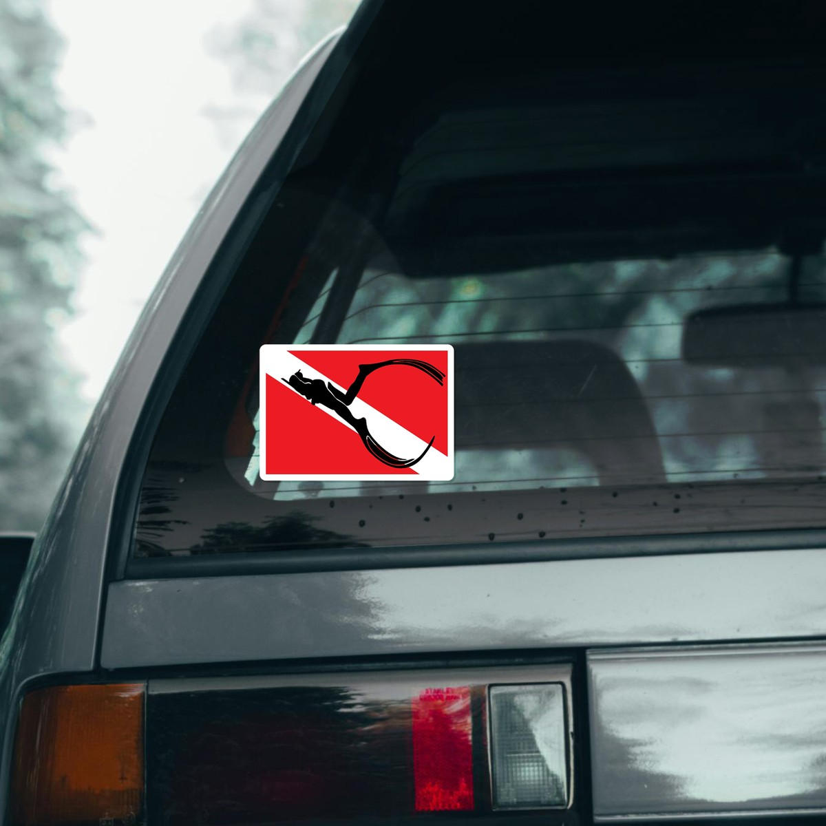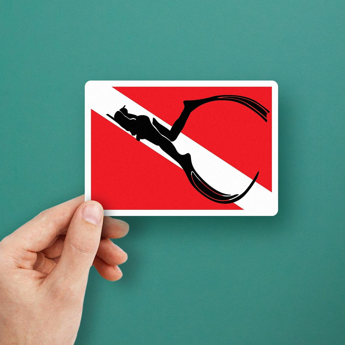 Show your love for scuba diving with this bold dive flag sticker featuring a diver silhouette. Perfect for cars, boats, or laptops, this vinyl decal adds a touch of ocean adventure to any surface. Made from durable vinyl, this sticker is both fade-resistant and weatherproof, making it ideal for outdoor use. Easy to apply and remove without leaving residue, it’s the perfect way to showcase your passion for the underwater world. Available in multiple sizes, this iconic dive flag sticker is a must-have for any diver or ocean enthusiast.