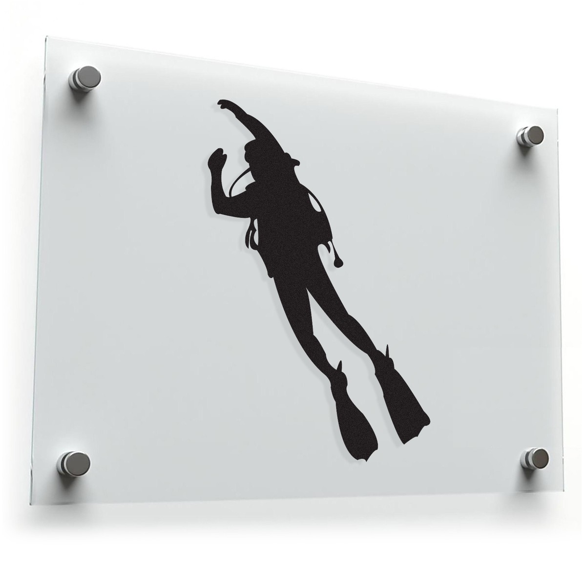 Celebrate the beauty of underwater adventures with this scuba diver silhouette sticker. Rendered in sleek black vinyl, the dynamic design captures the thrill of diving, making it a perfect addition for ocean enthusiasts and decor lovers. This versatile decal works seamlessly on walls, laptops, car windows, or other smooth surfaces, adding a bold and aquatic-inspired touch to your space. Available in multiple sizes, it can be customized to fit your needs, from a small decorative accent to a statement centerpiece. Durable and easy to apply, it resists fading and peeling while offering residue-free removal for ultimate convenience.