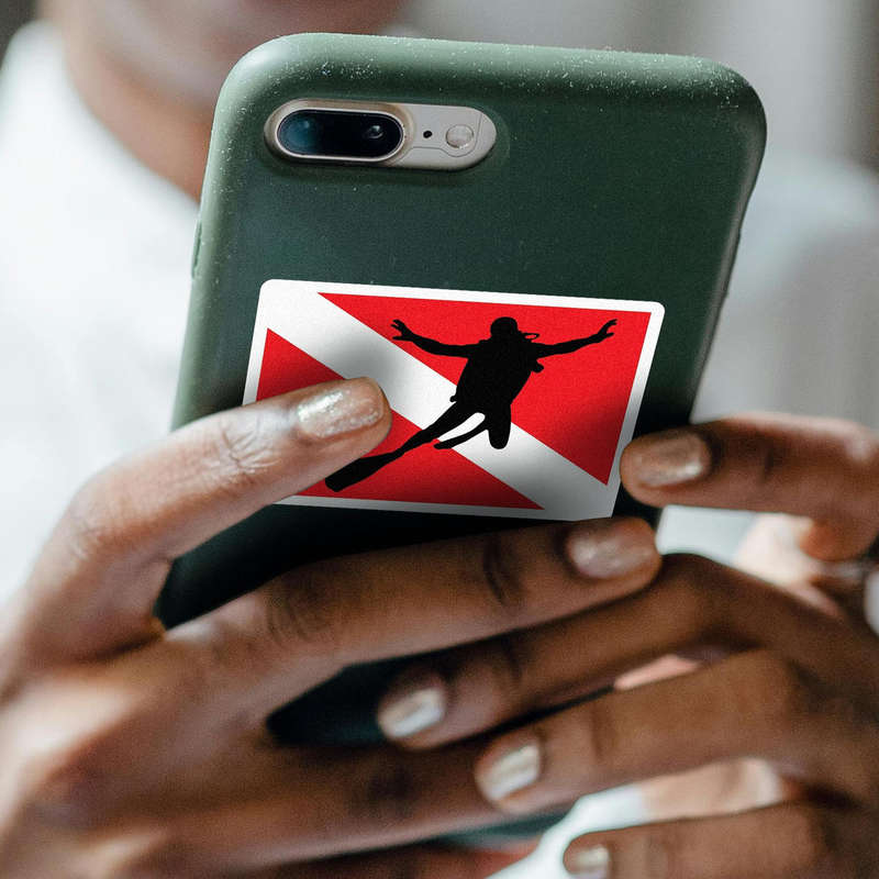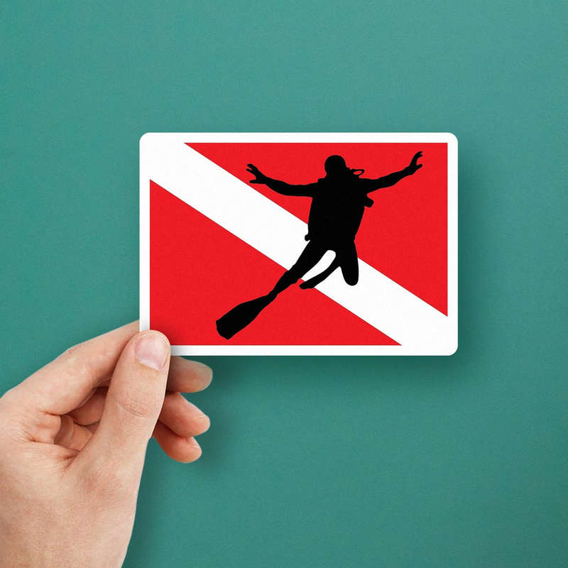 Show your love for the underwater world with this scuba diver silhouette vinyl decal. Featuring the classic red and white dive flag and a bold diver silhouette, this sticker is perfect for personalizing your car, laptop, or dive gear. Crafted from durable, weatherproof vinyl, this decal can withstand outdoor conditions and exposure to water, making it ideal for both indoor and outdoor use. It’s easy to apply and remove without leaving any sticky residue behind, allowing for both temporary or permanent decoration. Available in multiple sizes, this decal is a must-have for scuba diving enthusiasts.