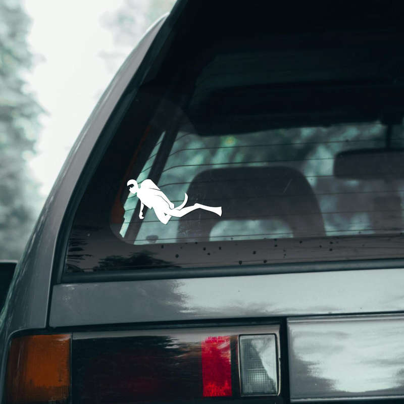 Dive into style with this sleek scuba diver vinyl decal. Featuring a bold black silhouette of a diver, this sticker is perfect for cars, boats, walls, or custom decor projects. Made from high-quality vinyl, it is weatherproof and durable, resisting fading and peeling under outdoor conditions. The adhesive backing allows for easy and seamless application on smooth surfaces. Available in multiple sizes, this versatile decal adds a touch of adventure and marine-inspired charm to any space or vehicle.