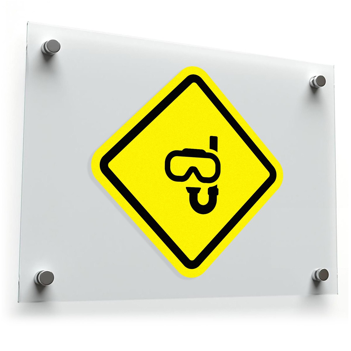 Highlight your love for underwater adventures with this scuba diving warning sign sticker, featuring a clear snorkel and mask graphic on a high-visibility yellow background. Made from durable, weatherproof vinyl, this decal is designed to withstand outdoor conditions, making it ideal for boats, docks, and dive sites. The easy peel-and-stick application allows for quick installation on smooth surfaces, leaving no residue upon removal. Perfect for scuba divers and water sports lovers, this sticker adds an adventurous touch to any environment while enhancing safety and awareness. Available in multiple sizes to suit various needs.