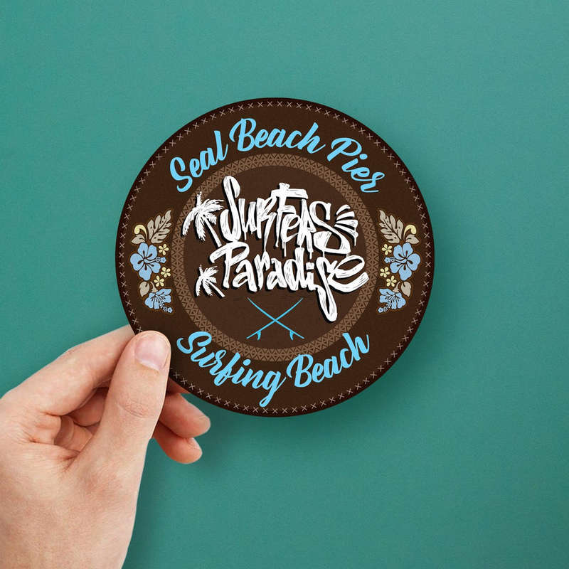 Bring the coastal vibes to your gear with this Seal Beach Pier “Surfing Paradise” vinyl sticker. Featuring a stylish design with palm trees, surfboards, and floral accents in rich brown and blue tones, this decal is perfect for beach enthusiasts and surfers alike. Made from durable, water-resistant vinyl, it ensures long-lasting use and vibrant colors on laptops, water bottles, car windows, or any flat surface. Easy to apply and remove, it offers a seamless customization experience without any sticky residue. Whether you’re decorating your gear or gifting to a beach lover, this sticker delivers tropical charm and quality. Available in multiple size options for the perfect fit!