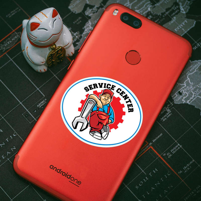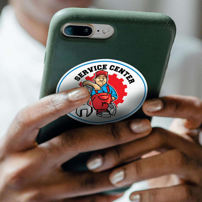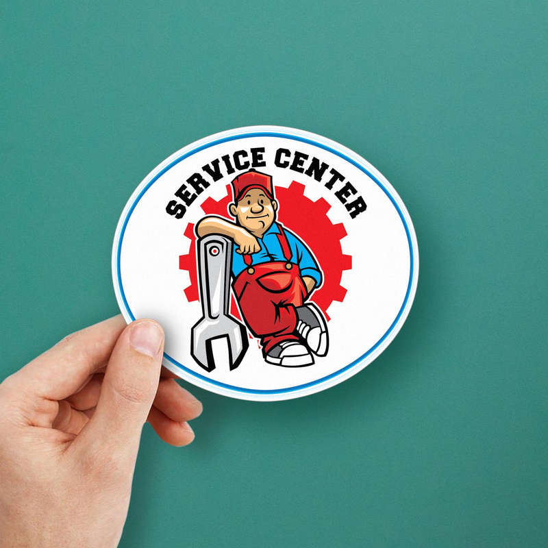 Service Center Vinyl Sticker 🔧 Eye-Catching Design: Featuring a cheerful mechanic with a wrench and bold red and blue accents, this sticker is perfect for adding a professional yet approachable vibe to any space. 🔧