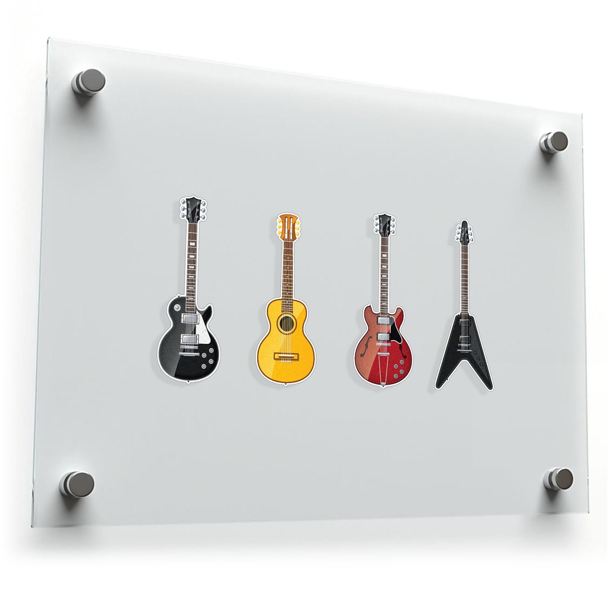 Add a touch of musical charm to your decor with this set of four guitar stickers, featuring classic electric, acoustic, and bass guitar designs. Made from high-quality vinyl, these decals offer durability and vibrant colors that stand up to both indoor and outdoor use. Ideal for decorating cars, laptops, or walls, they allow you to express your love for music in any setting. The easy application and residue-free removal make them perfect for renters or anyone who loves changing up their decor. Available in multiple sizes, this set is a fantastic way to bring a creative, musical atmosphere to your space.