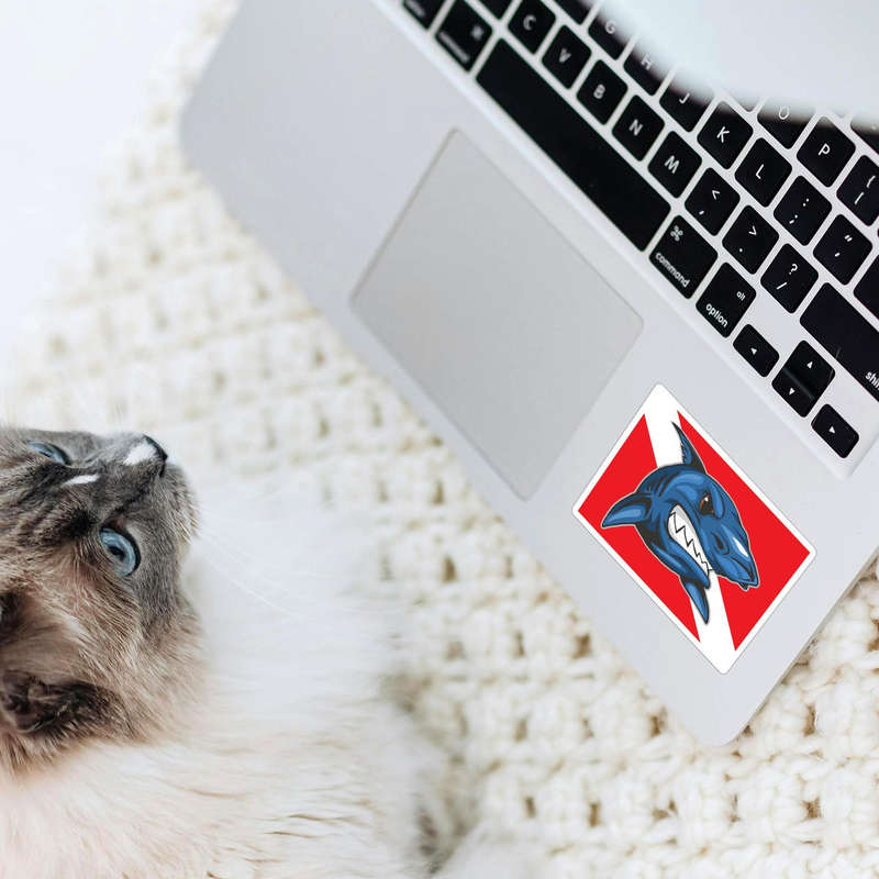 Dive into adventure with the Shark Dive Flag sticker, featuring a fierce blue shark against the iconic red and white scuba diving flag background. This bold decal is crafted from durable vinyl, ensuring it stays waterproof and weatherproof, perfect for both indoor and outdoor use. Whether you’re a scuba diving enthusiast or a fan of marine life, this sticker is a dynamic way to personalize your car, laptop, water bottle, or other surfaces. The vibrant blue shark design paired with the vivid flag colors creates a captivating visual impact that celebrates the thrill of underwater exploration. Available in multiple sizes, this sticker is easy to apply and remove without any residue.