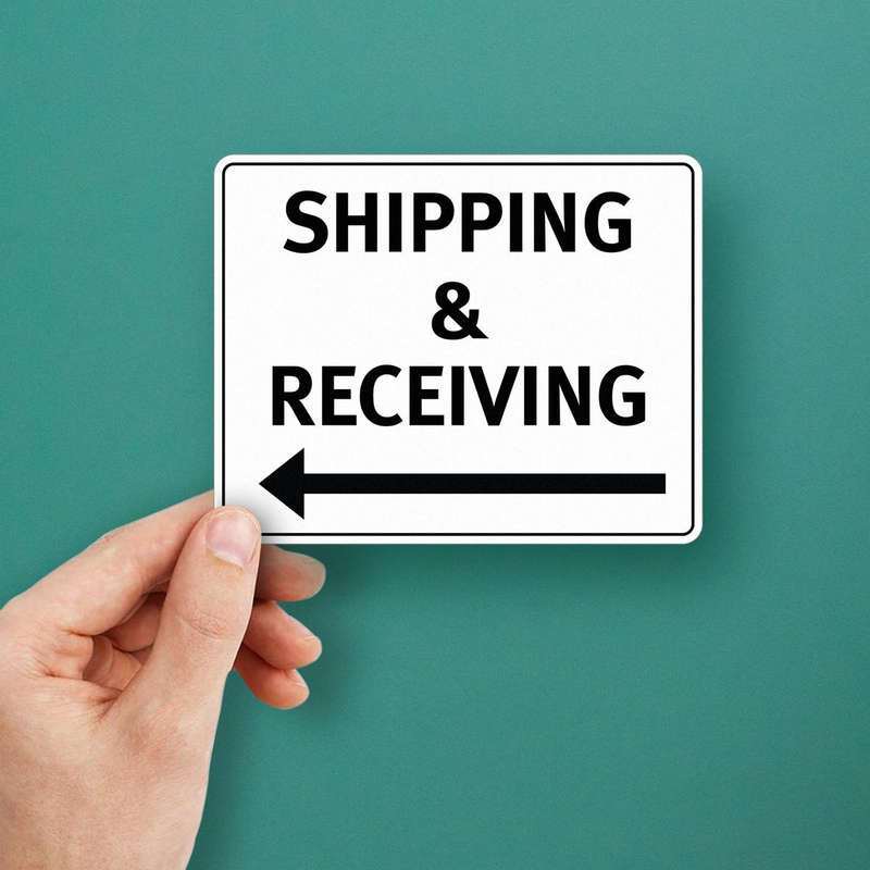 Streamline your operations with this “Shipping & Receiving” directional decal, crafted to improve organization and navigation in busy logistics areas. Featuring a left-pointing arrow and a bold black-and-white design, this sticker ensures high visibility and clarity even from a distance. Constructed from durable vinyl, it is resistant to wear and tear, making it suitable for both indoor and outdoor use. Its adhesive backing allows for quick and hassle-free application on doors, walls, or signs, and it can be removed cleanly without residue. Perfect for warehouses, shipping centers, or logistics hubs, this decal is an essential tool for workplace efficiency.