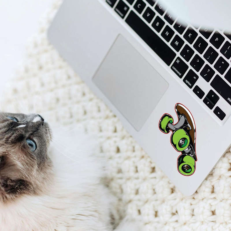 Add a touch of action and energy to your decor with this skateboard wall decal, featuring vibrant green wheels and bold, dynamic detailing. Perfect for skaters and sports enthusiasts, this high-quality vinyl sticker is durable and resistant to peeling and fading, ensuring long-lasting vibrancy. Whether for bedrooms, game rooms, or skate shops, this versatile decal enhances your space with a modern and action-packed vibe. Available in 20 size options, it can serve as a bold statement piece or a subtle accent to match your style. Easy to apply and remove, this skateboard decal is a fun and hassle-free way to personalize your space.