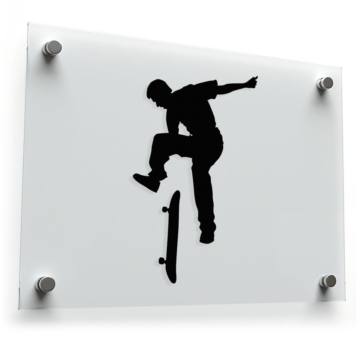 Embrace the thrill of skateboarding with this dynamic skateboarder silhouette sticker, capturing a skater mid-trick in a striking black design. Made from durable, weatherproof vinyl, this decal is built to withstand the elements, making it suitable for cars, laptops, walls, and more. Its bold black silhouette pops against light surfaces, adding an urban, edgy touch to your decor. Available in multiple sizes, this sticker is perfect for skate enthusiasts, extreme sports fans, and those who appreciate modern, action-inspired art.