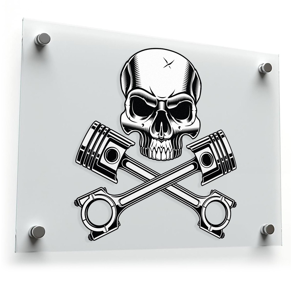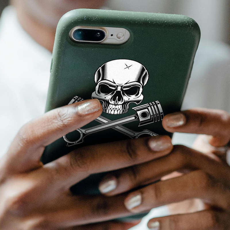 Skull and Cross Pistons Sticker 💀 Striking Skull Design: This bold decal features a menacing skull paired with crossed pistons, a perfect symbol of power and rebellion for motorcycle and engine enthusiasts. 💀