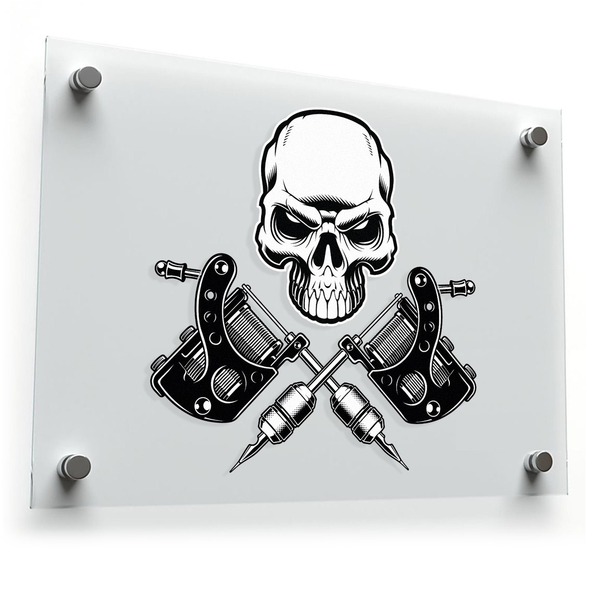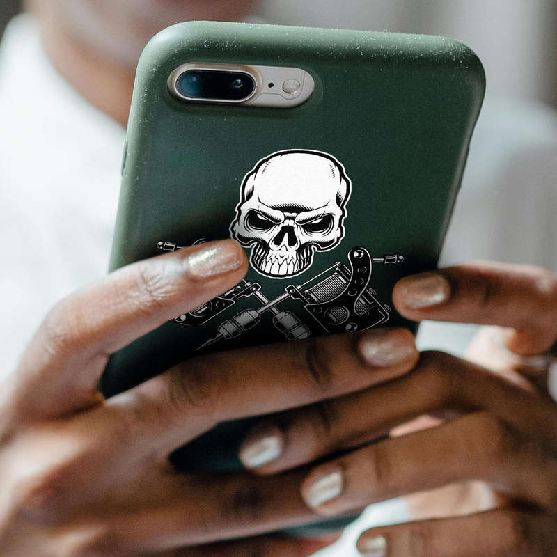 Skull and Tattoo Machine Sticker 💀 Striking Tattoo Design: Make a statement with this bold skull and crossed tattoo machine sticker, perfect for expressing your love for ink and art! 💀
